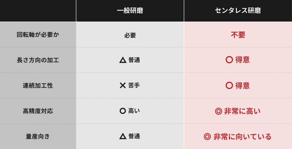 センタレス研磨とは、芯を使わずに部品の外側を高精度に研磨する技術です。